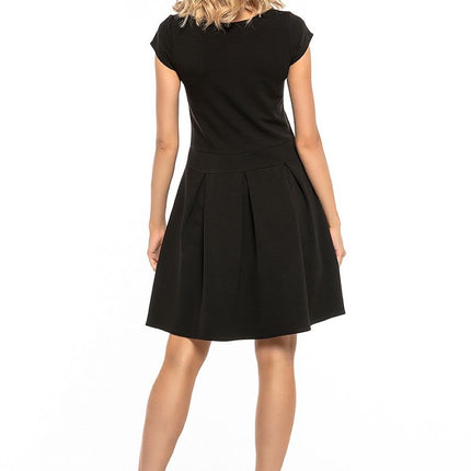 Elegant dress with contrasting pleats. Dress with short sleeves and a boat neckline. Ideal for many occasions. Cotton 70 %... Read more