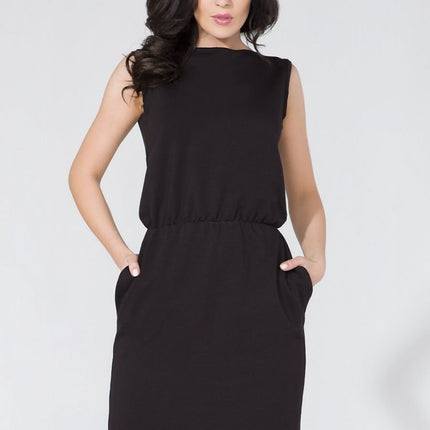 Dress in knitwear with a cut that conceals body imperfections. On the hips pockets in the seam. Gently tightened at... Read more