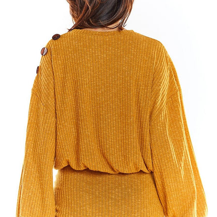 Long-sleeved sweater with a kimono cut. Oversized cut, decorative buttons on shoulders in subdued color add to its character. Elastic... Read more